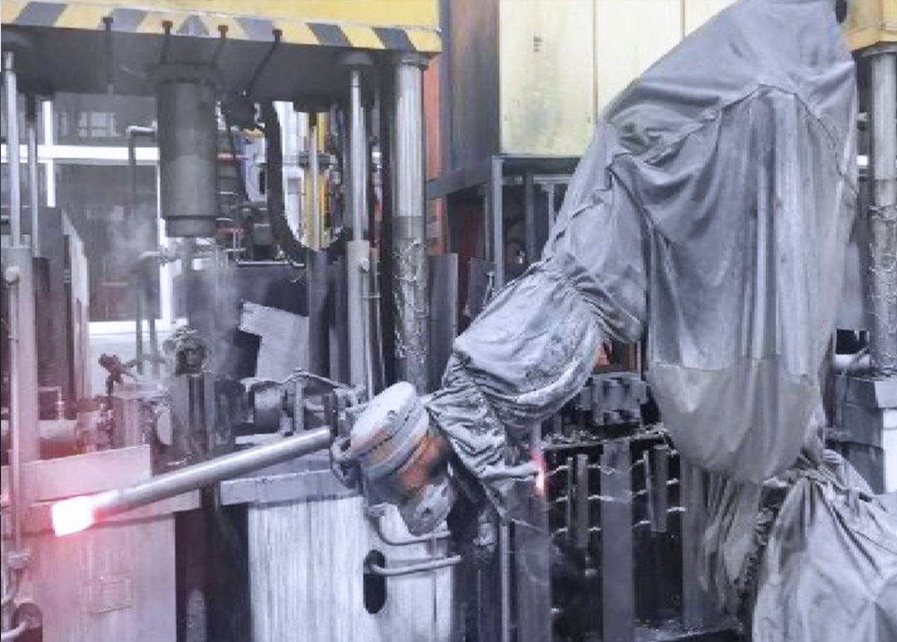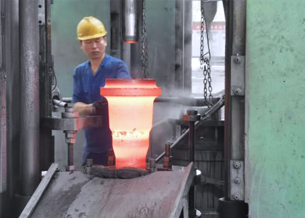 The material is heated to 1150-1180 degrees in an intermediate frequency heating furnace, and the desired shape is achieved through three processes: upsetting, punching, and forming.